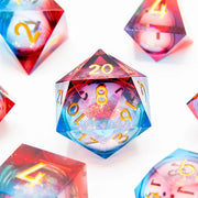 The Liquid Core dice set stands out with its sharp-edged design, ensuring fairness in rolling, paired with the captivating movement of mica within the liquid core. This combination not only looks spectacular but also adds an element of magical realism to your gameplay.